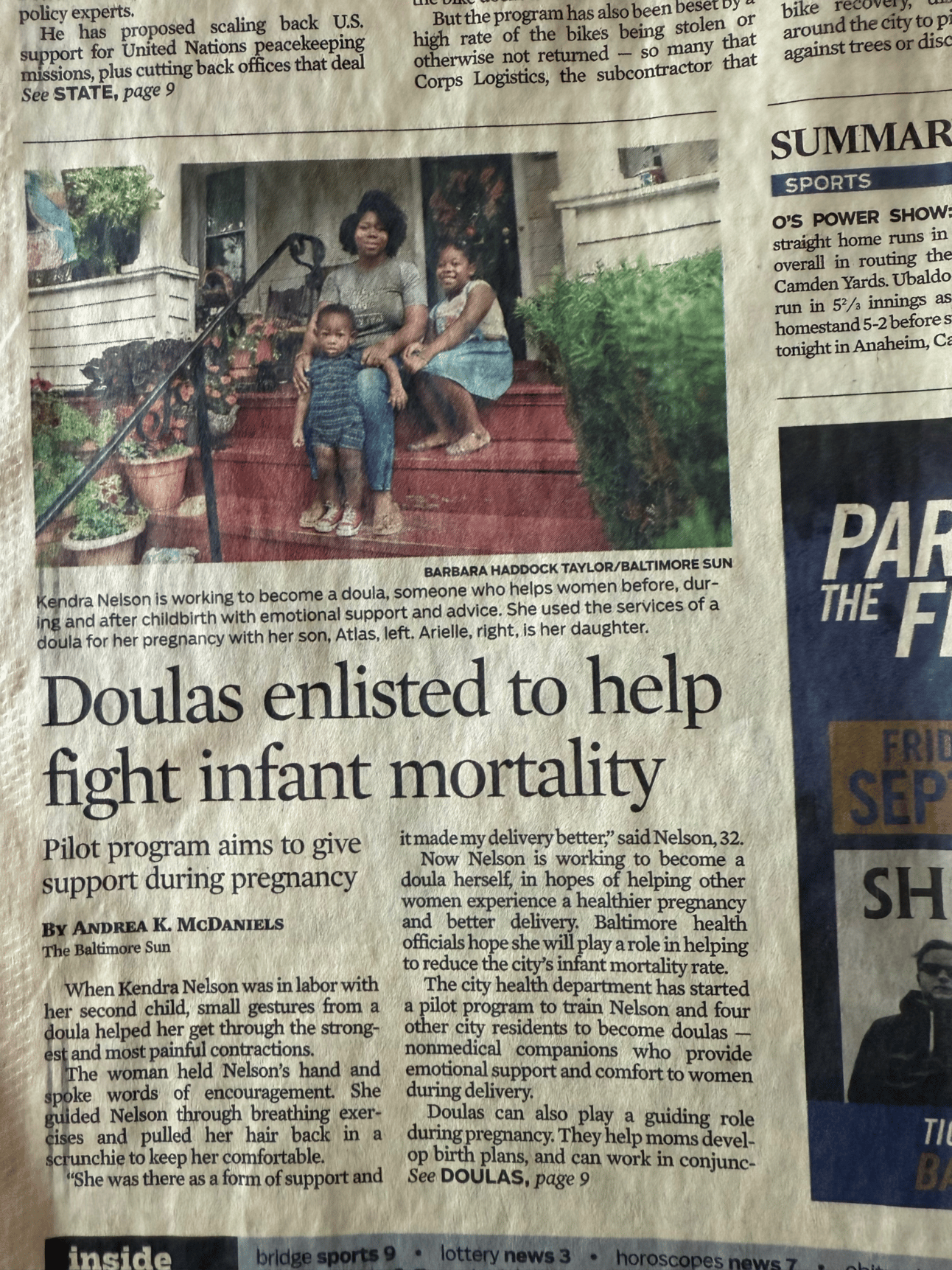 There I was on the front page: a young Black mom on her stoop with her kids, talking about birth work and public health. That moment validated everything. It wasn’t just personal—it was political. It was worth printing.